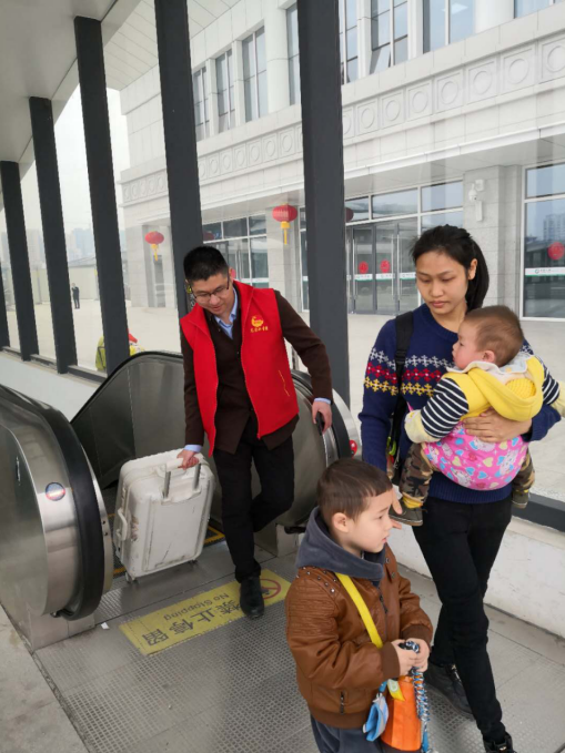 在火車站服務(wù)最需要幫助的有三種人:一種是殘疾人,一種是老年人,另外一種就是一手抱著小孩、一手提著行李的旅客。因新建火車站剛剛啟用,“請(qǐng)問進(jìn)站口在哪兒?當(dāng)一位拿著大包小包還帶著孩子的旅客問到。“在這邊,我來幫你?!?/span>志愿者一邊指著路一邊接過旅客手中的包,一路將她送至進(jìn)站口。