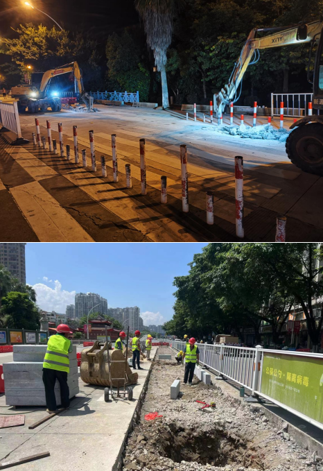 小溪路口地處老城區(qū)、蓮東片區(qū)、新城區(qū)交界處,群眾反映該路口交通標(biāo)識不清、行人過街不便等,存在安全隱患,為此,市委、市政府及市住建局等相關(guān)部門高度重視,決定由市政集團所屬企業(yè)市城投公司對該路段實施提升改造,重點實施道路白改黑、雨污分流改造、綠化提升、道路標(biāo)識完善、交通安全設(shè)施提升等建設(shè),項目總投資約3500萬元。工程于7月下旬開工建設(shè),目前正在進行混凝土病害處理、雨水管網(wǎng)開挖鋪設(shè)、路沿石安裝及各管線遷改等施工作業(yè)。